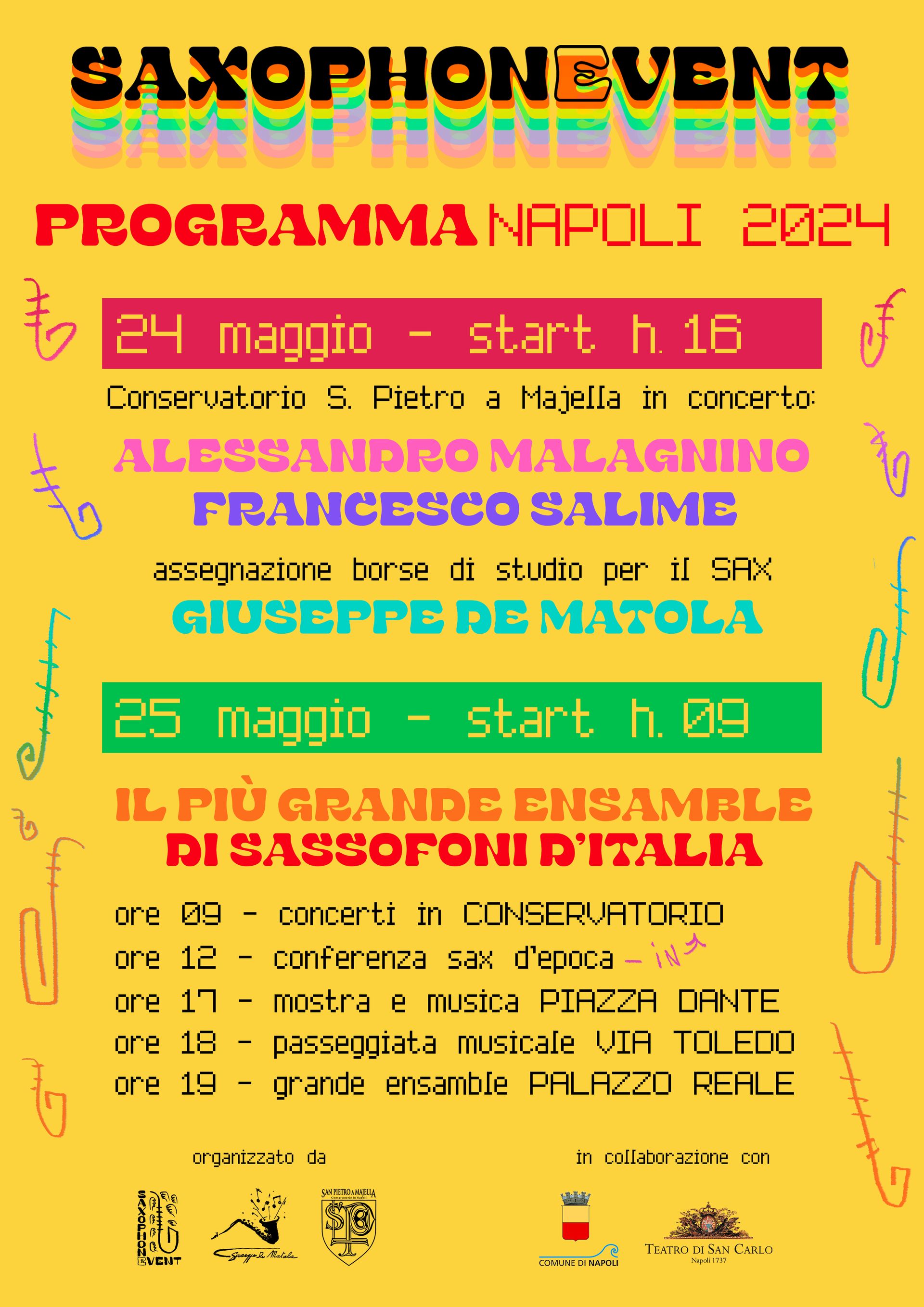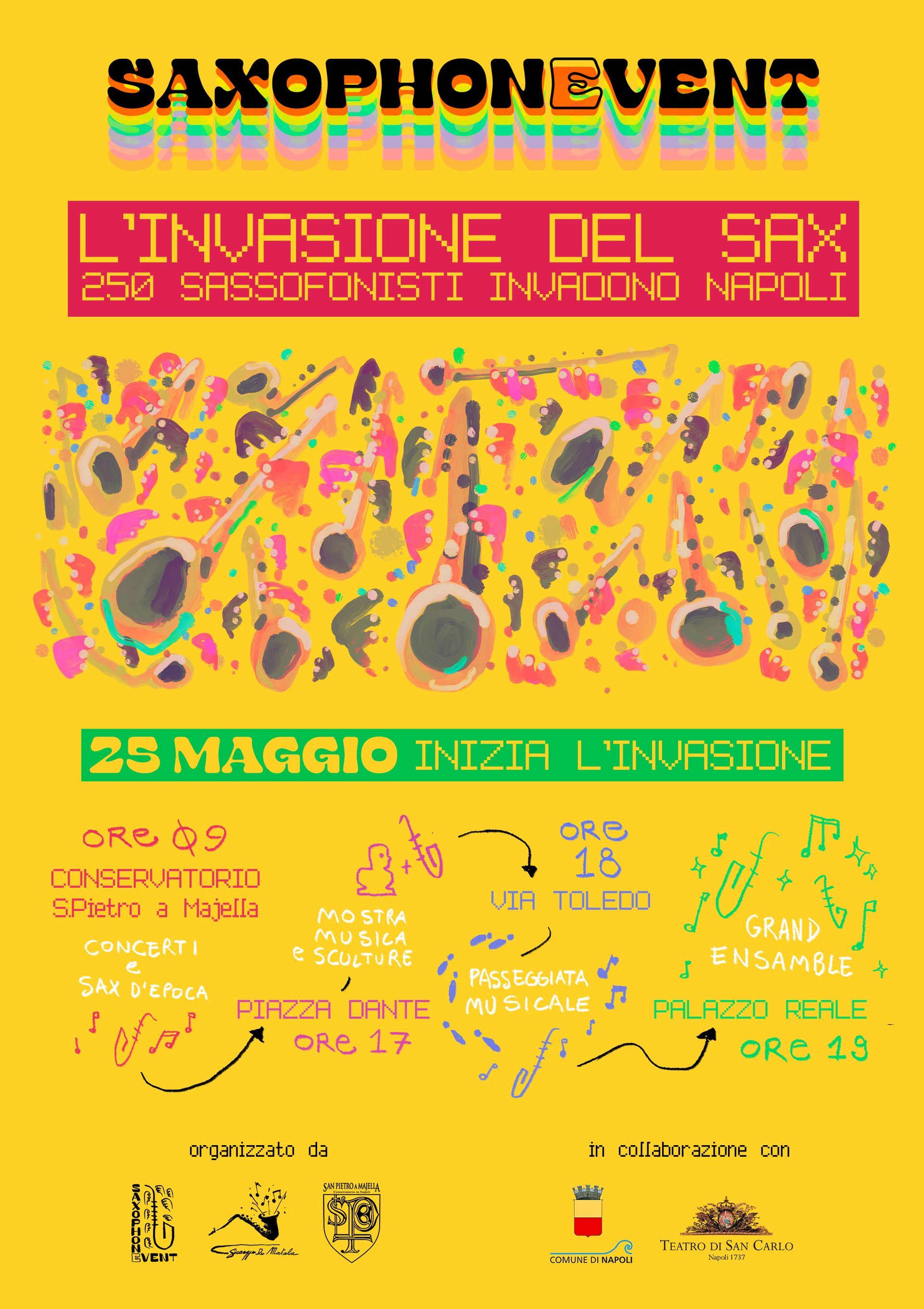 Venerdì 24 e sabato 25 maggio Napoli si prepara a vivere un’esperienza musicale unica: oltre 250 sassofonisti, giunti da ogni angolo d'Italia e del mondo, si riuniranno al Conservatorio di Musica San Pietro a Majella, per realizzare il più grande ensamble di sassofoni d’Italia.